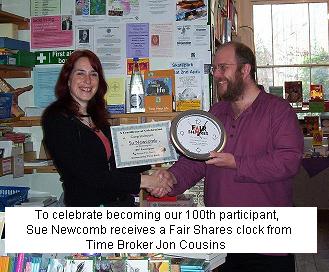 We marked the occasion by presenting Su with a specially made �Fair Shares� clock. The award was donated by the Fair Shares Charity, whose patron is environmentalist Jonathon Porritt.